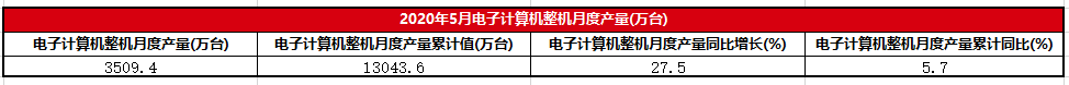 2020年5月电子计算机整机月度产量