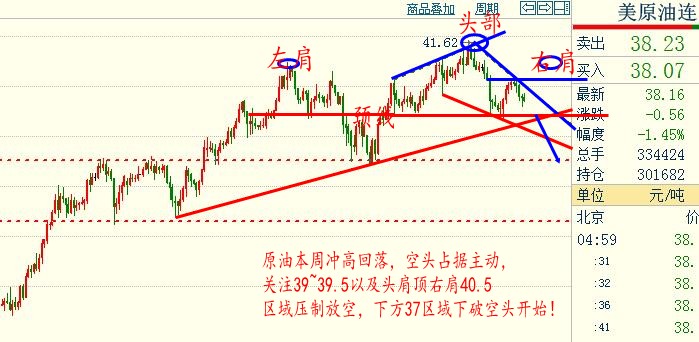 基本面OPEC+消息主导市场,疫情带来的需求下降支持空头;盘面来看,原油自4月21日见底以来日线第二次收阴,且周四转阳后周五再收阴,这说明当前天平已经在向空头倾斜。下周原油仍有望继续下挫,关注37区域支撑,进一步35~34区域,最大30大关;上方压力关注39.0~40以及4小时图右肩40.5区域。对于操作上,逢高做空为主,多单辅助即可!