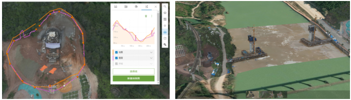 2022年6月,阳光财险在广西龙川高铁工程项目中引入无人机查勘和3D建模技术,对全线路进行无人机航拍,对暴雨天气容易出险的边坡、路基、基坑、涉水桥、便道以及沿线三者财产等区域进行了逐一拍照,并对线路中跨河大桥、跨铁路线路等重要风险管控区域建立三维立体模型,通过影像资料对工程中的重要风险隐患进行提示,指导施工。