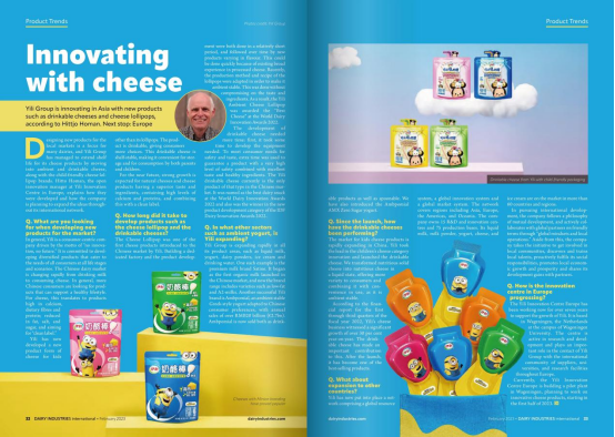 近日,全球最具影响力的乳业行业媒体、全球唯一的乳业国际月刊《国际乳业》杂志(Dairy Industries International)在最新一期杂志上,围绕伊利集团创新及奶酪研发等相关话题,以两个整版篇幅对伊利欧洲创新中心专家希特乔·霍曼(Hittjo Homan)进行了独家专访。