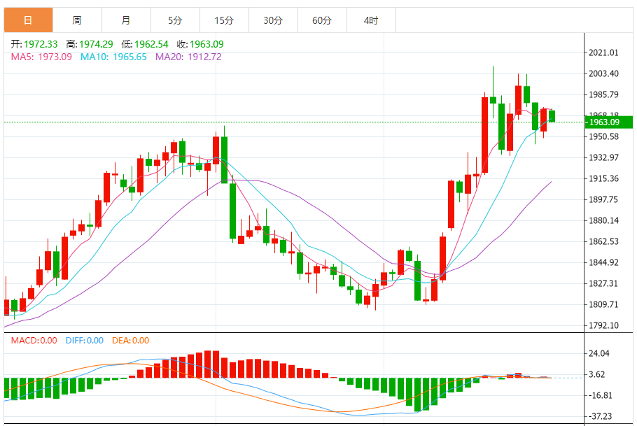 上方5日均线阻力目前在1972.97附近,然后是1980关口阻力,由于MACD金叉信号仍在,若能收复1980关口,则削弱短线看空信号。