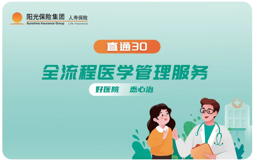 “直通30”服务是阳光人寿于2022年推出的,以满足客户对于优质医疗服务与保障需求的服务体系。依托“直通30”服务,阳光人寿可以为不幸罹患特定高发癌症(10种)的患者提供国内知名三甲医院优质的诊疗服务体验,让患者在主诊医生和专属病案经理的全程协助下,享受从初诊、复诊、住院及院外康复全流程医学管理服务。一旦符合理赔条件,客户还能获得保险理赔,减轻患者康复治疗的经济压力。