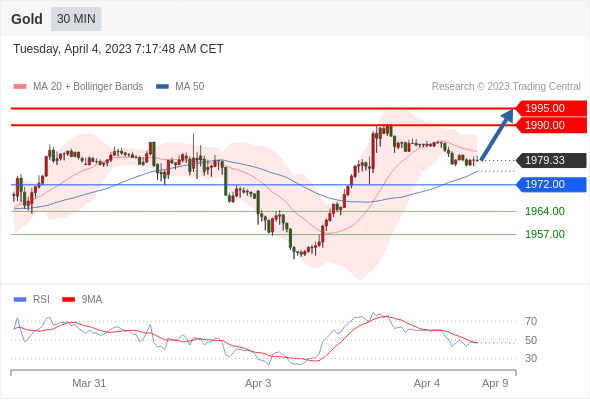 在 1972.00 之上,看涨,目标价位为 1990.00 ,然后为 1995.00 。