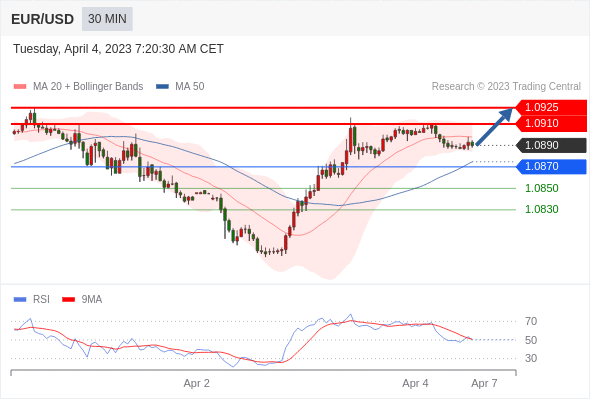 在 1.0870 之上,看涨,目标价位为 1.0910 ,然后为 1.0925 。