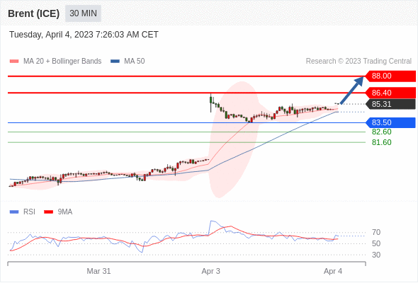 在 83.50 之上,看涨,目标价位为 86.40 ,然后为 88.00 。