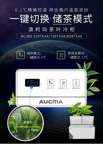 澳柯玛BC/BD-520TEAX系列茶叶柜可有效延长茶叶赏鲜期,让消费者能够买到色、香、味、形都保存完好的茶叶产品,储鲜留香,助力茶商抢“鲜”。