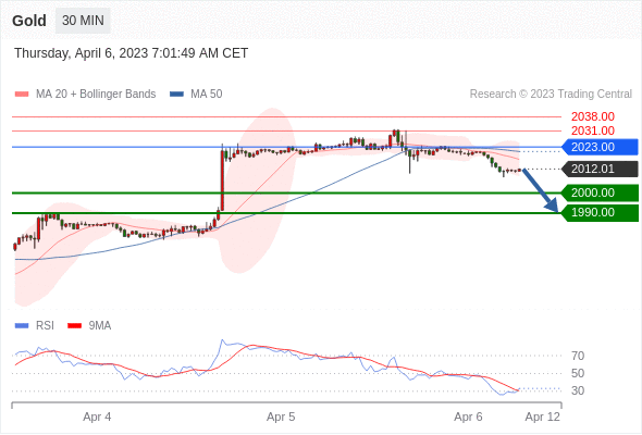 在 2023.00 之下,看跌,目标价位为 2000.00 ,然后为 1990.00 。