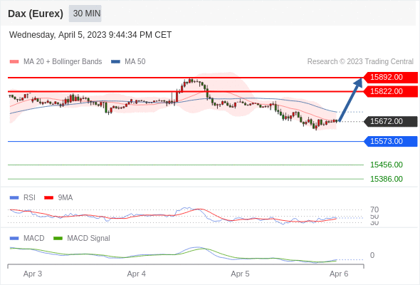 如跌破 15573 ,德国DAX指数期货 (Eurex) 目标方向定在 15456 和 15386 。
