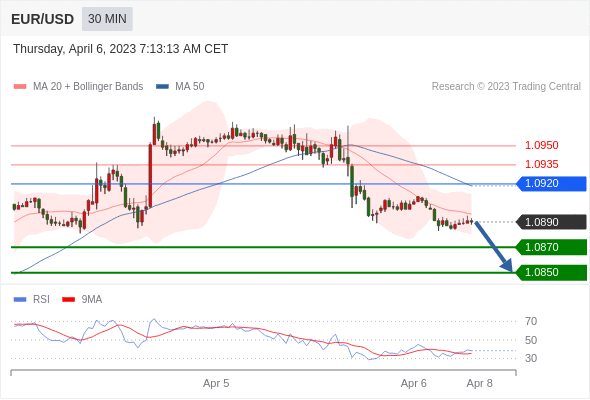 在 1.0920 之下,看跌,目标价位为 1.0870 ,然后为 1.0850 。