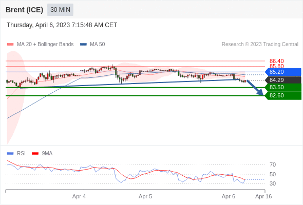 在 85.20 之下,看跌,目标价位为 83.50 ,然后为 82.60 。