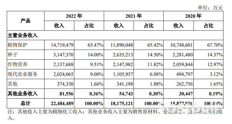 这之中,植保和种业占据了先正达营收的最大两个部分,三年平均占比分别超65%和14%。