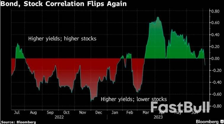 值得一提的是,隔夜对于华尔街交易员而言,除了不同期限的美债收益率竞相“破4”、“破5”备受瞩目外,还有一个现象可能更为值得警惕,那就是股债市场之间关联性正在再度翻转……