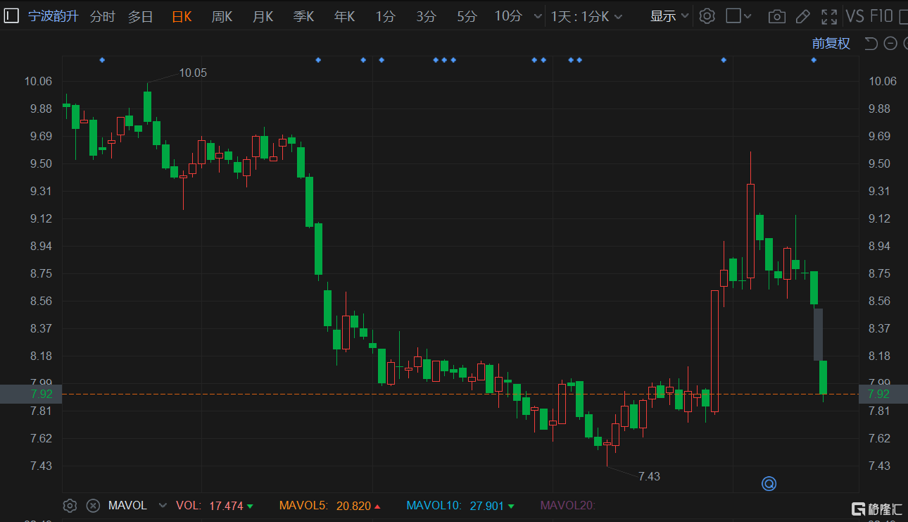 格隆汇7月17日丨稀土概念股走低,其中宁波韵升(600366.SH)午间收跌7.26%,报7.92元抹平此前涨幅,总市值88亿元。该股上周五盘后公告,预计2023年1-6月归属净利润亏损1.6亿元至1.9亿元,同比上年减166.61%至179.1%。报告期内,公司主要稀土原材料价格持续下跌,导致公司钕铁硼永磁材料成品销售均价下降。