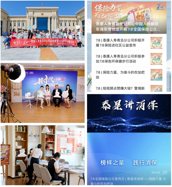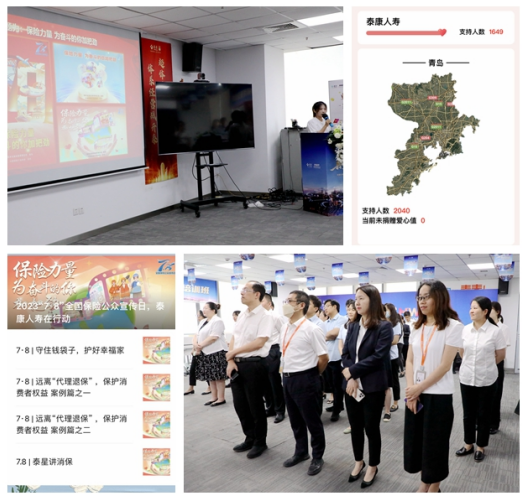 2023年正值第十一个“全国保险公众宣传日”,为了充分展现保险业的发展成果,体现保险业的功能作用和责任担当,泰康人寿青岛分公司自上而下高度重视,线上线下立体推动开展富有特色、灵活多样、丰富多彩的7·8宣传活动,传递保险力量,为奋斗者加把劲,向社会发出泰康声音。