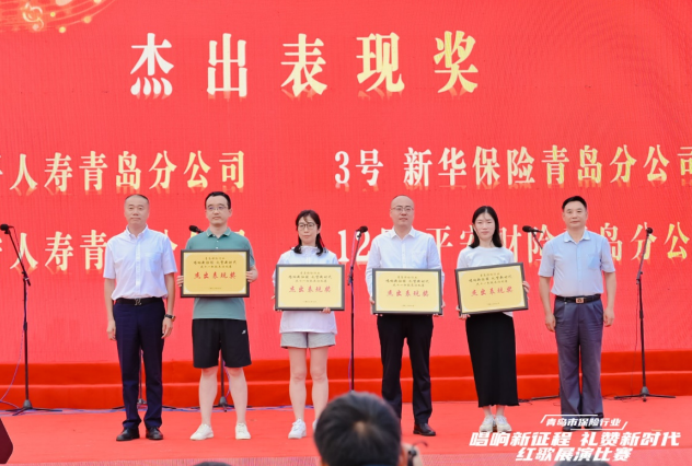 7月15日,由青岛银保监局指导、青岛市保险行业协会主办的“唱响新征程 礼赞新时代”红歌展演比赛在石老人水秀广场举行,平安财险青岛分公司合唱团在副总经理谢有强的带领下参加了活动。分公司合唱团精彩演唱《我和我的祖国》,获得本次比赛“杰出表现奖”。