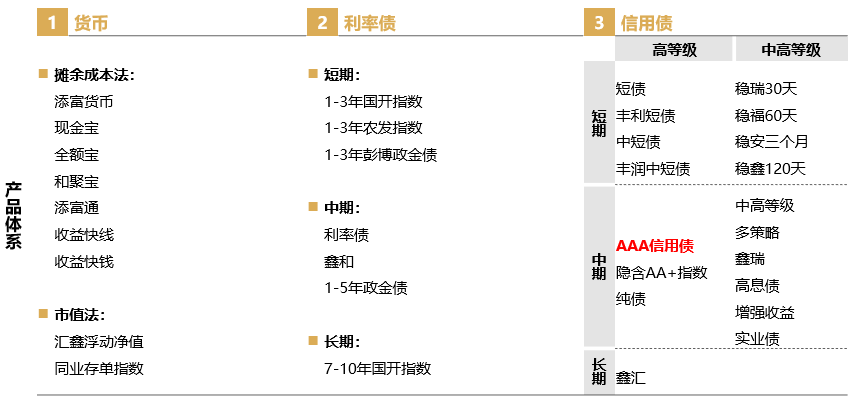 而在这张产品矩阵图上,杨靖把汇添富AAA信用债定位在“高质量收益”的坐标点上。