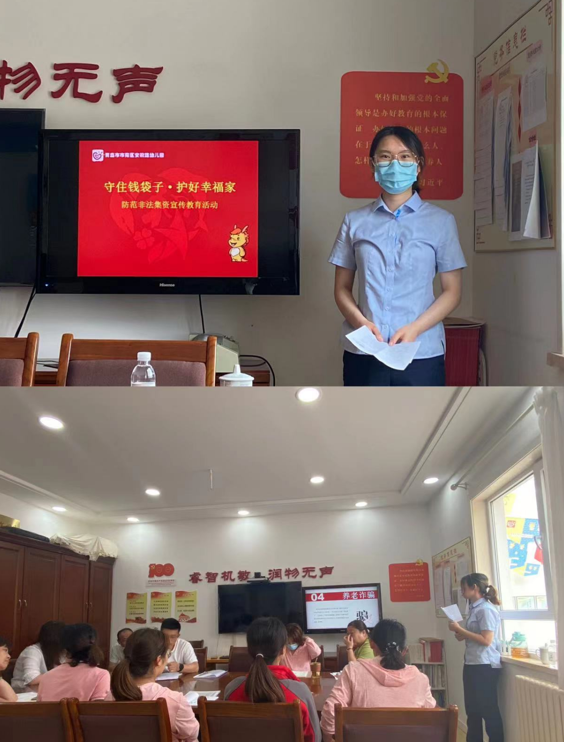为了保障广大金融消费者的财产安全,特别是新市民群体的财产安全,预防和减少电信诈骗案件的发生,浦发银行青岛市北支行组织走进安徽路幼儿园,面向外来户籍的幼儿园老师开展“反电信诈骗”宣传教育活动,向广大幼儿园老师详细介绍电信诈骗犯罪分子管用的犯罪手法、作案方式以及电信诈骗所带来的危害,切实提高金融消费者的安全意识和防范能力。此次宣传受众老师群体共计110余人,有效提升了广大老师对安全支付用卡的金融知识和防范电信诈骗意识。