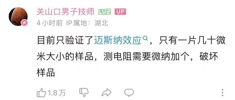 但该UP主也指出,目前只验证了迈斯纳效应,只有一片几十微米大小的样品,若进一步测电阻还需等下一批样品出来。