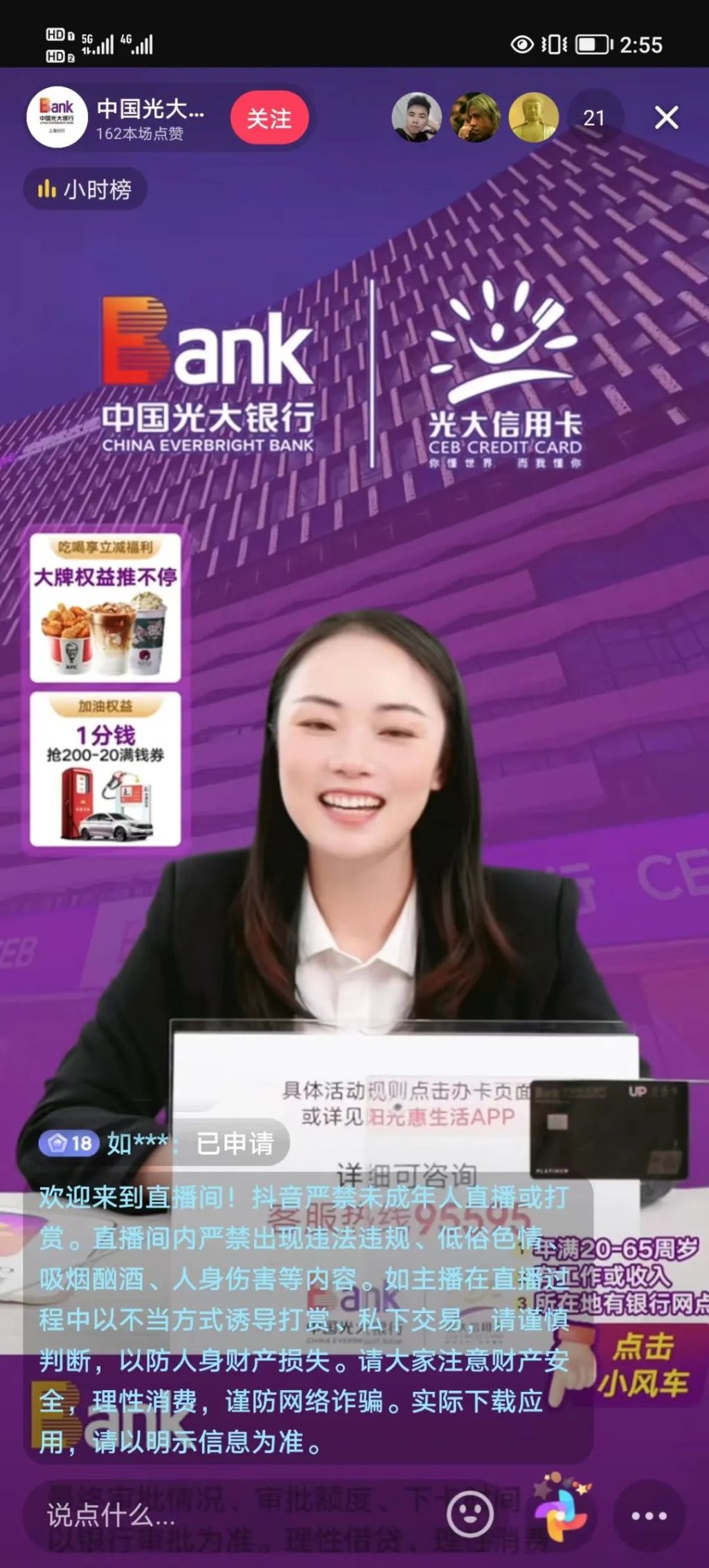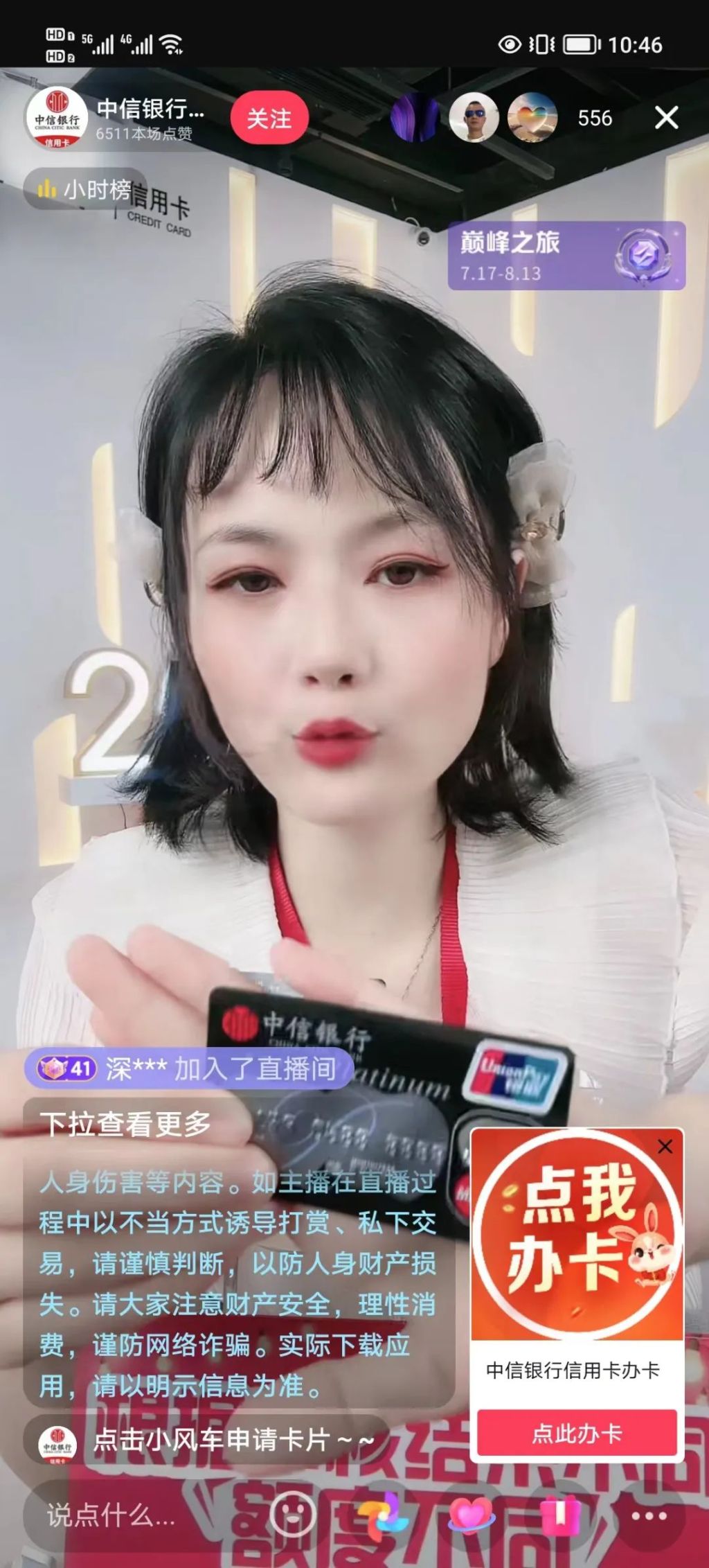 除贷款产品外,许多银行机构也将信用卡带入了“万物皆可直播”的直播间。