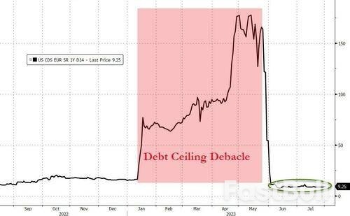 美国信用违约互换(CDS)的走势也可以印证这一点:美国主权风险几乎完全不为惠誉调降评级这种“小事”所动。