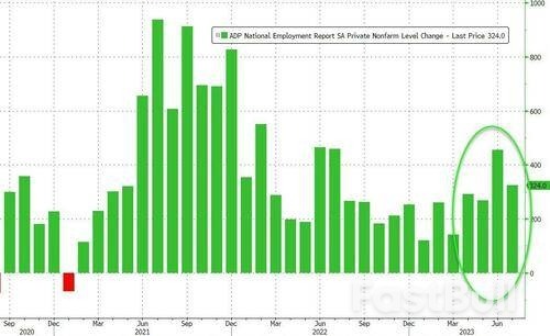 ADP Research Institute与斯坦福数字经济实验室周三联合发布的数据显示,美国7月份ADP私营部门就业人数增长了32.4万人,超过了媒体调查的所有经济学家的预期,经济学家此前的预期中值仅有18.9万人。
