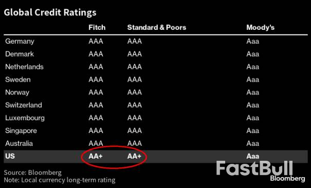 这是发达经济体逾10年来信用坍塌趋势的最新例证。在惠誉评级(Fitch Ratings)将美国评级下调至AA+后,该公司表示,目前仍保留在其AAA评级名单上的国家数量已减少到了9个,仅占全球政府债务总额的6%,而此前这一比例还高达41%。