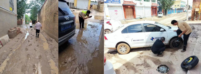 前往公司受损车辆较多的涿州大马村时,村民说中路保险是第一个过来开展车辆救援的保险公司。