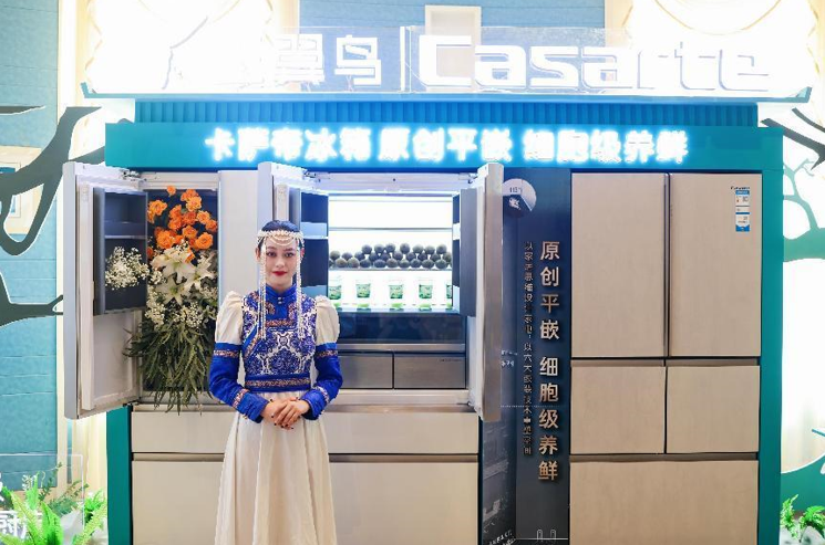 第一,在最传统的民居发布最新的智慧生活。蒙古包作为内蒙最常见的民居形态之一,代表着当地居民的生活方式。但是在人们的传统认知里,蒙古包似乎联想不到高科技的“智慧家庭”。事实相反,发布会现场发布了卡萨帝平嵌冰箱设计新一代厨房,我们可以近距离体验其各种美食生活场景,冰箱不仅搭载了MSA控氧保鲜科技,可保证食材7天营养几乎0流失,买来食材后,通过智慧管夹自动录入,吃完后主动提醒用户下单补货。不仅如此,在三翼鸟厨房内,冰箱可以完美嵌入橱柜,就算两台冰箱并排侧面紧贴,各自仍能90°开门……传统的蒙古包与现代的智慧生活完美融合,浑然一体。