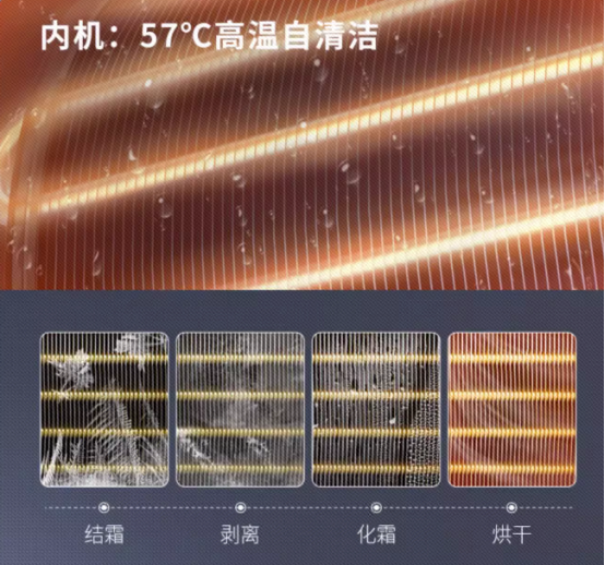 业内研究表明,“空调病”的最主要原因是由于长时间不清理空调,导致细菌在潮湿的环境中滋生,冷风会携带大量细菌,对健康产生威胁。澳柯玛新款空调采用高温自清洁技术,蒸发器通过结霜、膨胀剥离、化霜、烘干四个过程,将灰尘从蒸发器上剥离干净,同时,蒸发器温度高达57℃,可以有效杀死细菌,搭配高密度过滤网,可有效隔离灰尘,避免细菌和灰尘的困扰。