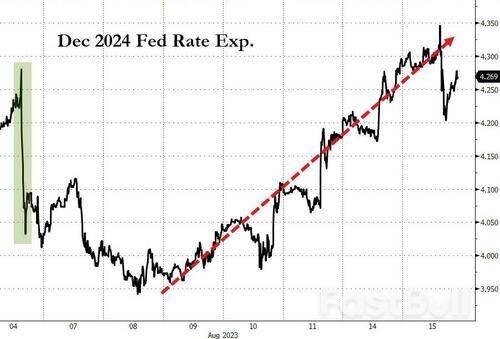 根据FactSet的数据,虽然利率期货交易员目前仍认为美联储今年不太可能再次加息25个基点,但他们现在预计的明年降息幅度比一个月前要明显更小。